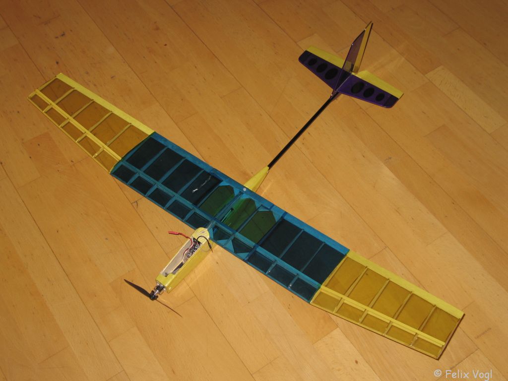 durch die eine Fläche mehr Balsa (+ Folie) auch etwas schwerer wurde.